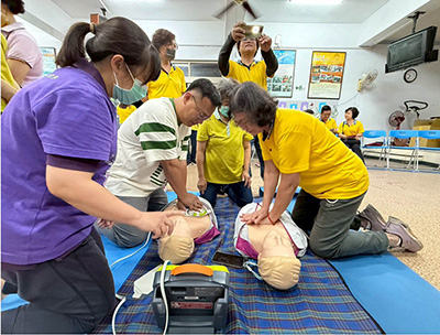 當天在援剿右神元宮旁的安招社區活動中心現場,由專業的醫療人員為參加居民進行了AED(自動體外心臟去顫器)及CPR (心肺復甦術)的急救教學,居民們積極參與,認真學習自救及救援技巧。透過實作演練,大家的急救能力得到了顯著提升,活動氣氛熱烈。
