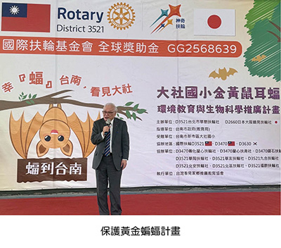 台南大社的黃金蝙蝠是台灣生態保護的標的之一。本地區台北市華朋社社長King金文徵爭取到國際扶輪全球獎助金8萬美金及善化蘭心社等諸多扶輪社的支援,並獲得日本、韓國的捐贈及參與,成立了「樂蝠夜精靈教室」, 以兼顧「環境保護」及「生態保育」的目的,這是全球首創之校園金黃鼠耳蝠生態教室,並被列入大社國小的校本課程。