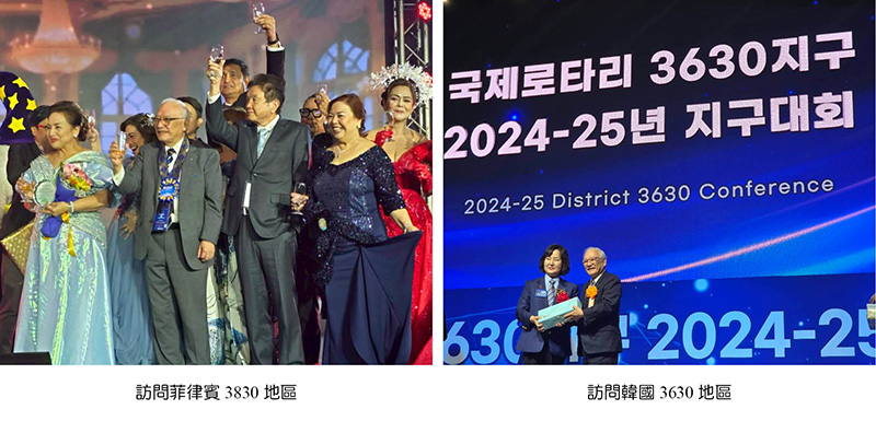 我們3521地區有兩個姊妹地區,依照慣例我們還是要做互訪活動,因此4月初我先到菲律賓出席馬尼拉3830地區的年會,旋即於4月下旬再到韓國訪問3630地區年會,受到熱烈的歡迎。日本方面我們雖然沒有姊妹地區,但是2790地區(千葉)高齡91歲的資深前總監土屋亮平先生和我私交彌篤,因此特別率領10人訪問團出席我們的地區年會,隆情高誼,令人感佩。