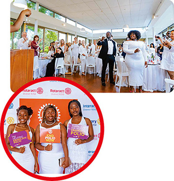 2016年,朋友們的輕鬆晚餐促成了這項活動,如今它已發展成為每年在開普敦舉辦的慈善晚宴,旨在為根除小兒麻痺症籌款。「我們當時的想法是,一邊享用美食,一邊募款。隨著想法的演變,我邀請了我所屬的扶青社加入,」雷克斯‧伊普‧奧馬梅赫(Rex IP Omameh)解釋道,他現在是布勞貝格(Blouberg)扶青社和扶輪社的社員。在2024年的盛會,約100位與會狂歡者走過紅毯時,享受著狗仔隊的追捧。這場盛會吸引了當地各界名流、嘉賓以及9350地區扶青社和扶輪社的社員,來為扶輪的根除小兒麻痺症工作以及扶青社前往烏干達參與小兒麻痺症疫苗接種活動的旅程募款。「每年我們都能看到越來越多的人,尤其是年輕人,透過這項活動變得對小兒麻痺症的防治充滿熱情,」奧馬梅赫說。今年的慶祝活動定於11月8日舉行,主題為「非洲團結:和平與根除小兒麻痺盛會」。