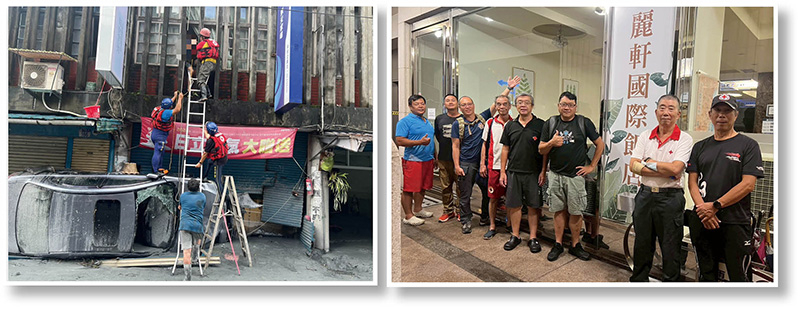 在假日結束的隔天(9月30日至10月1日),他們在凌晨4時出發,駕車直奔花蓮災區,只為在第一時間為受災居民伸出援手。抵達現場後,兩人與當地志工及宜蘭扶輪社友共同投入救災行列,手握鐵鏟、搬運泥塊、疏通水溝,協助居民清理被厚重泥濘淹沒的家園。