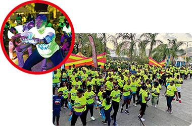 聖文森及格瑞那丁群島 聖文森(St. Vincent)扶輪社於6月與一家健身中心合作,舉辦了一場名為「螢光夜跑」的健康活動。據扶輪社員基梅莎‧貝利(Kimeisha Bailey)報導,黃昏時分,約500名參與者手持發光棒,沿著風景優美的路線,從該群島首都金斯敦(Kingstown)的郵輪碼頭出發,點亮了沿途的街道。企業和醫療機構也贊助了這個家庭導向的活動。「這次螢光夜跑是我們扶輪社持續致力於疾病預防和治療的一部分。」貝利說。這次活動也支持了7030地區推廣健康生活方式、鼓勵聖文森人保持活力的概念。「我們社目的在透過帶動社區活動,來提升公眾理解並採取行動。」貝利說。該社還為家庭提供了線上健身課程和營養網路講座。