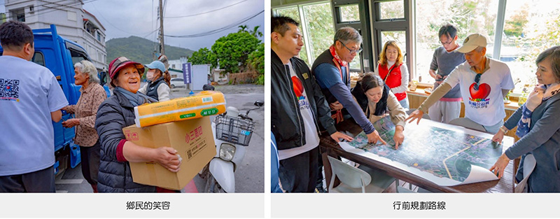 想像一下,堆滿倉庫的500箱物資如何送達鄉民手上?出發前,我頻頻與當地幾位相關人員溝通協調,臨行前還忐忑不安,擔心各種狀況;糾集公益網委員參加時,還特別提醒大家:此次的社會服務不同以往,記得穿寬鬆衣服球鞋,我們要身體力行服務真義。抵達光復鄉後,與當地扶輪社友及志工會合後,規劃好運送路線、分配人員後,我們搭上小貨卡展開難忘的發送旅程。妞妞帶著9歲的小孩服務,個頭小小的男生搬起一箱5公斤重的物資,眉頭皺也不皺一下;委員不分男女,搶著搬運一箱箱的生活用品;志工沿途以大聲公廣播,鄉民或走路或推車,開心地領取物資,臉上的笑容撫慰了我們舟車勞頓疲憊的身心。隔天,我們在太巴塱教會舉辦另一場四季被物資捐贈儀式,在牧師的祝禱下,我們聆聽詩歌,歡喜接受上主的福音。