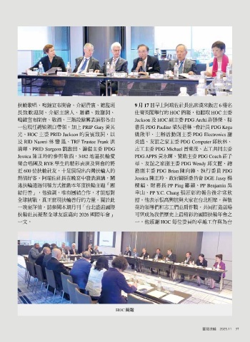 長致歡迎詞、介紹主講人、贈禮、致謝詞、 仕菁英閣舉行的 HOC 簡報,他聽取 HOC 主委