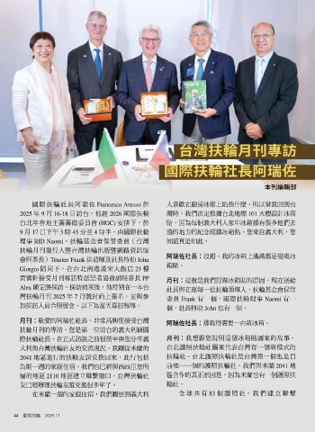 灣扶輪月刊 2025 年 7 月號封面上簽名,並與參 委員 Frank 有一個,國際扶輪理事 Naomi 有一