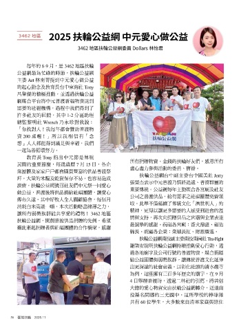 讓所有弱勢族群能共享愛的禮物! 3462 地區 精神,更得以讓更多需要的人感受到社會的溫