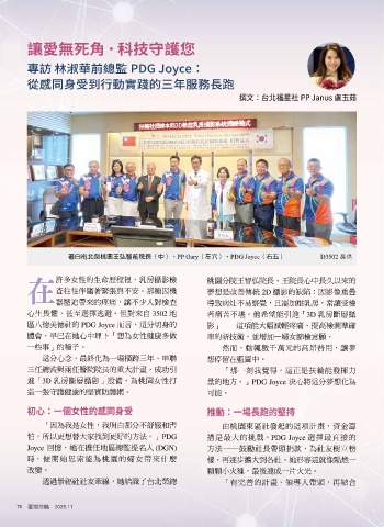 進「3D 乳房斷層攝影」設備,為桃園女性打 量的地方。」PDG Joyce 決心將這分夢想化為