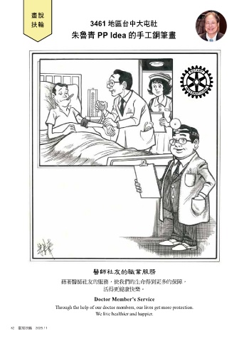 3461 ήਜ̨ʕɽˊٟ ϡኁڡ PP Idea ٙ˓ʈ፻അ 醫師社友的職業服務 藉著醫師社友的服務,使我們的生命得到更多的保障, 活得更健康快樂。 Doctor Member’s Service Through the help of our doctor members, our lives get more protection. We live healthier and happier. 82 臺灣扶輪 2025.11
