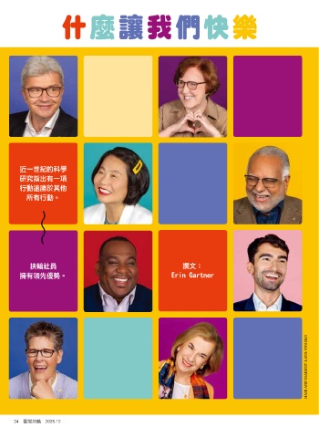 WHAT MAKES US HAPPY 什麼讓我們快樂 近一世紀的科學 研究指出有一項 行動遠勝於其他 所有行動。 扶輪社員 撰文: 擁有領先優勢。 Erin Gartner HAIR AND MAKEUP: LANE SWASKO 24 臺灣扶輪 2025.12 dec25-D-Science.indd 36 10/29/25 19:17