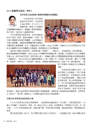 要的養分,透過公益音樂會不僅能培養學子的藝術涵養,更能將愛心散播到社區每個角落。音樂會在