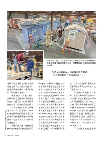 特里h李(右)正在指導一名志工組裝迷你屋。李和默瑟島