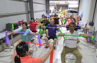 當天下午4時半於社友Tai提供的活動場所集合,社友們穿著輕便運動服裝報到,準備迎接一場動感滿滿的派對。下午5時正式展開彈力帶運動時段,由專業教練Ryan社長夫人謝宜庭帶領大家進行一小時的有氧燃脂運動,搭配彈力帶的訓練,讓參與者在歡樂中達到健身效果。
