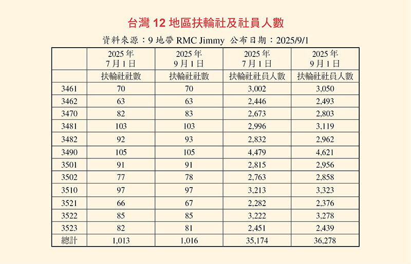台灣12地區扶輪社及社員人數 公布日期:2025/9/1