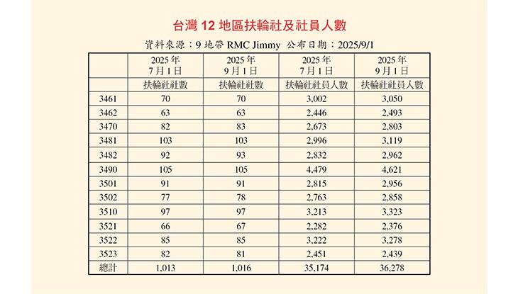 台灣12地區扶輪社及社員人數 公布日期:2025/9/1