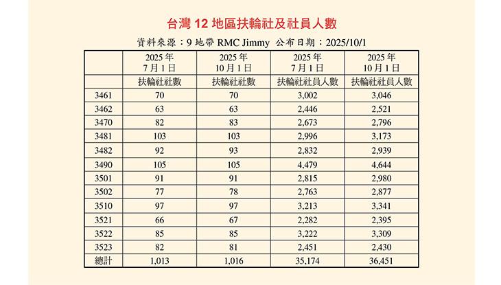 台灣12地區扶輪社及社員人數 公布日期:2025/10/1