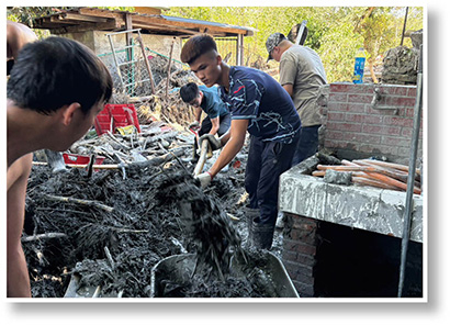 當天協助的居民多為素食者,志工們也貼心配合,簡單用餐,即刻重返工作現場。這份不計辛勞、無私奉獻的精神,不僅讓災民倍感溫暖,也展現出扶輪人「服務人類,改善世界」的核心價值。
