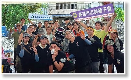 高雄中山社新社友Home陳宏庠本身是家泰名床有限公司負責人,以製造床墊為主,看到光復鄉居民們連家都被淹沒,家中的家電器具都被沖刷走了,他心悲憫想著這些災民該怎麼辦?該如何安心睡個好覺?便發動全工廠連夜趕工特製一批床墊,親自開著大貨車送到大馬村,還帶領內輪夫人及全體員工前往救災當志工,捲起衣袖個個化身「鏟子超人」。