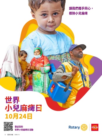 Together, 讓我們攜手同心, we end polio 根除小兒麻痺 ロータリーと共に ポリオをなくそう 24 OCTOBER ��月��日 Register your 世界ポリオデーに向け World Polio Day event 登記您的 活動を記録しよう 世界小兒麻痺日活動 12 臺灣扶輪 2025.10