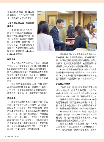 世界最好」。B 型企業是由美國非營利組織 B 重新評比一次,不是一次通過就一勞永逸。